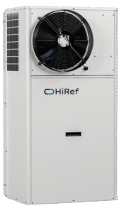Las altas relaciones eficiencia/espacio se logran gracias a la configuración modular de esta solución y al uso tanto de compresores de pistón accionados por inversor, como del paquete de intercambiadores de aletas en “V” con alta superficie de intercambio.
